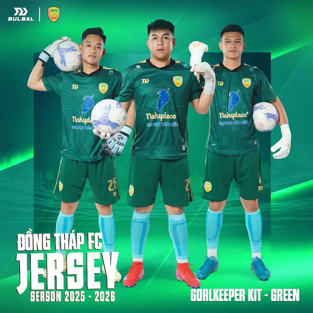 Thiết kế: Mẫu áo thi đấu chính thức của Đồng Tháp FC mùa giải 2025 – gồm trang phục thi đấu, thủ môn và training, giữ nguyên form dáng, màu sắc và chi tiết như cầu thủ chuyên nghiệp.